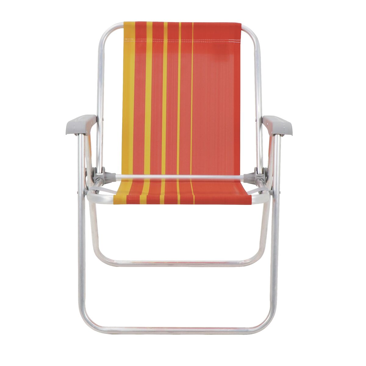 Produzida com estrutura em alumínio, a cadeira é leve, fácil de transportar e possui excelente durabilidade, resistente à maresia e ao uso diário. O assento e o encosto são confeccionados em tecido sintético de alta qualidade, garantindo conforto e ventilação mesmo em dias quentes.