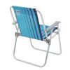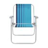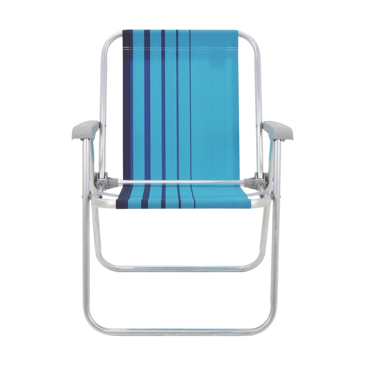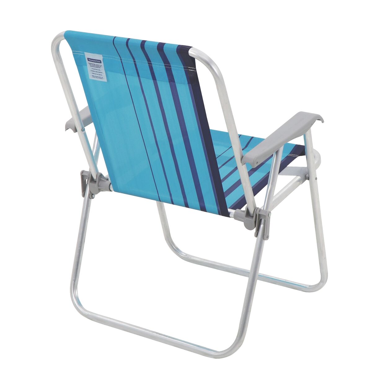 Produzida com estrutura em alumínio, a cadeira é leve, fácil de transportar e possui excelente durabilidade, resistente à maresia e ao uso diário. O assento e o encosto são confeccionados em tecido sintético de alta qualidade, garantindo conforto e ventilação mesmo em dias quentes.
