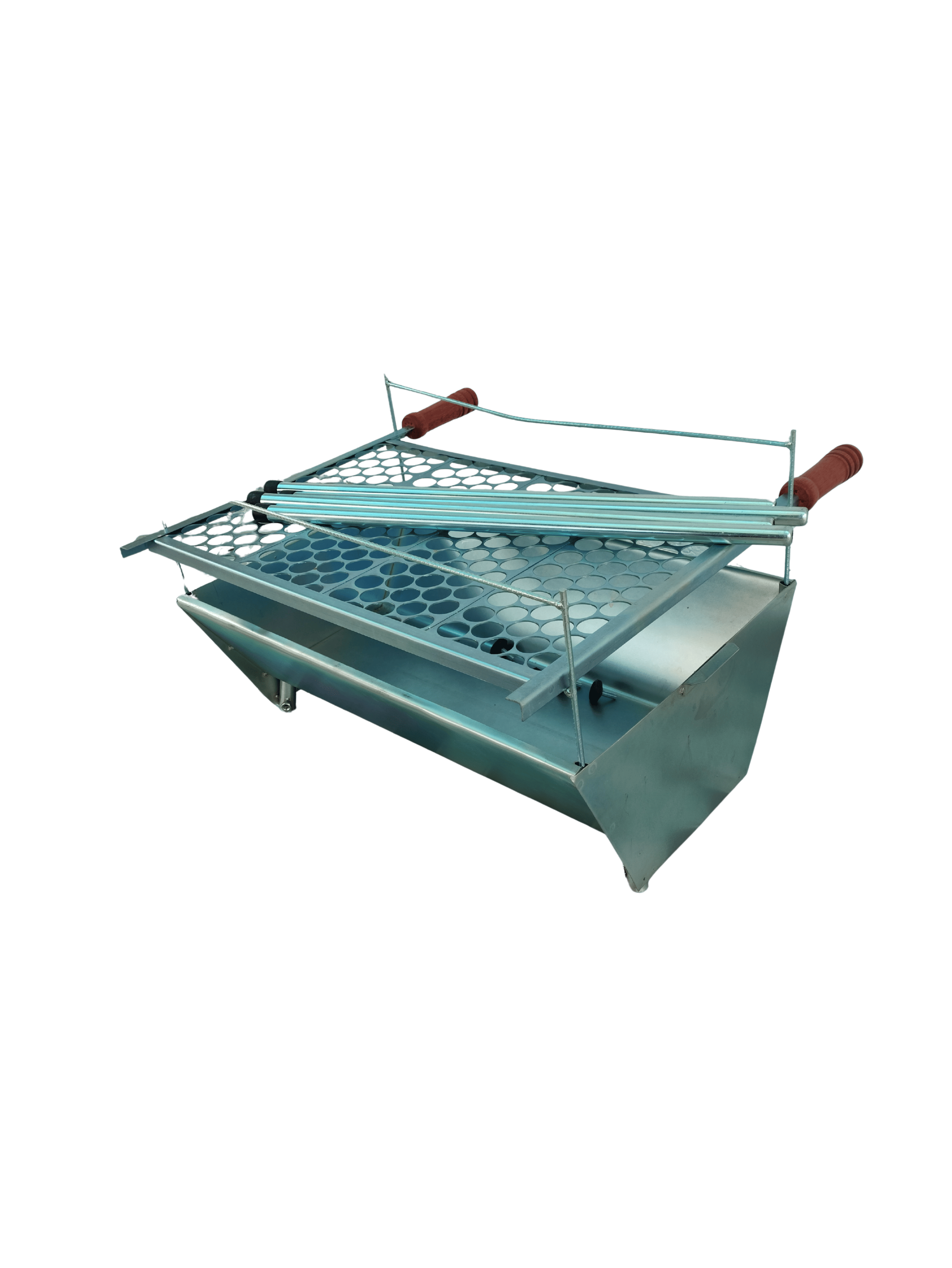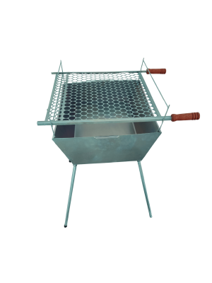 Fabricada em chapa resistente garante boa durabilidade e eficiencia no preparo do churrasco. O modelo desmontavel facilita o transporte e o armazenamento tornando o uso muito mais pratico.