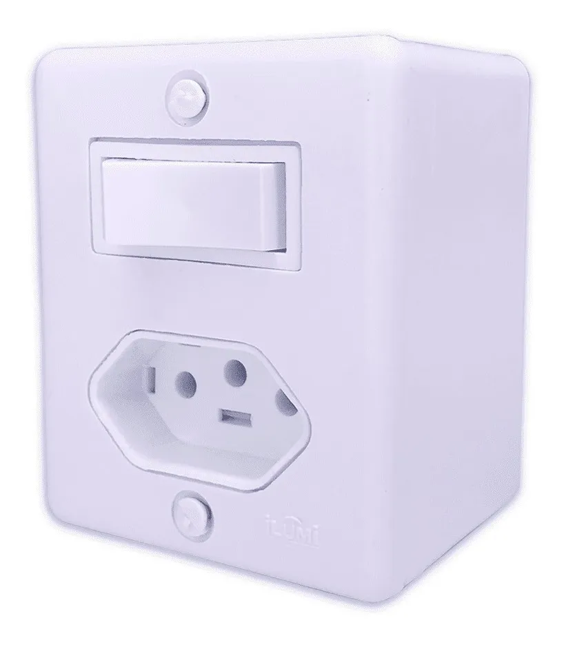 Interruptor 1 tecla simples com tomada 20A, modelo Sistema X Retangular da Ilumi.