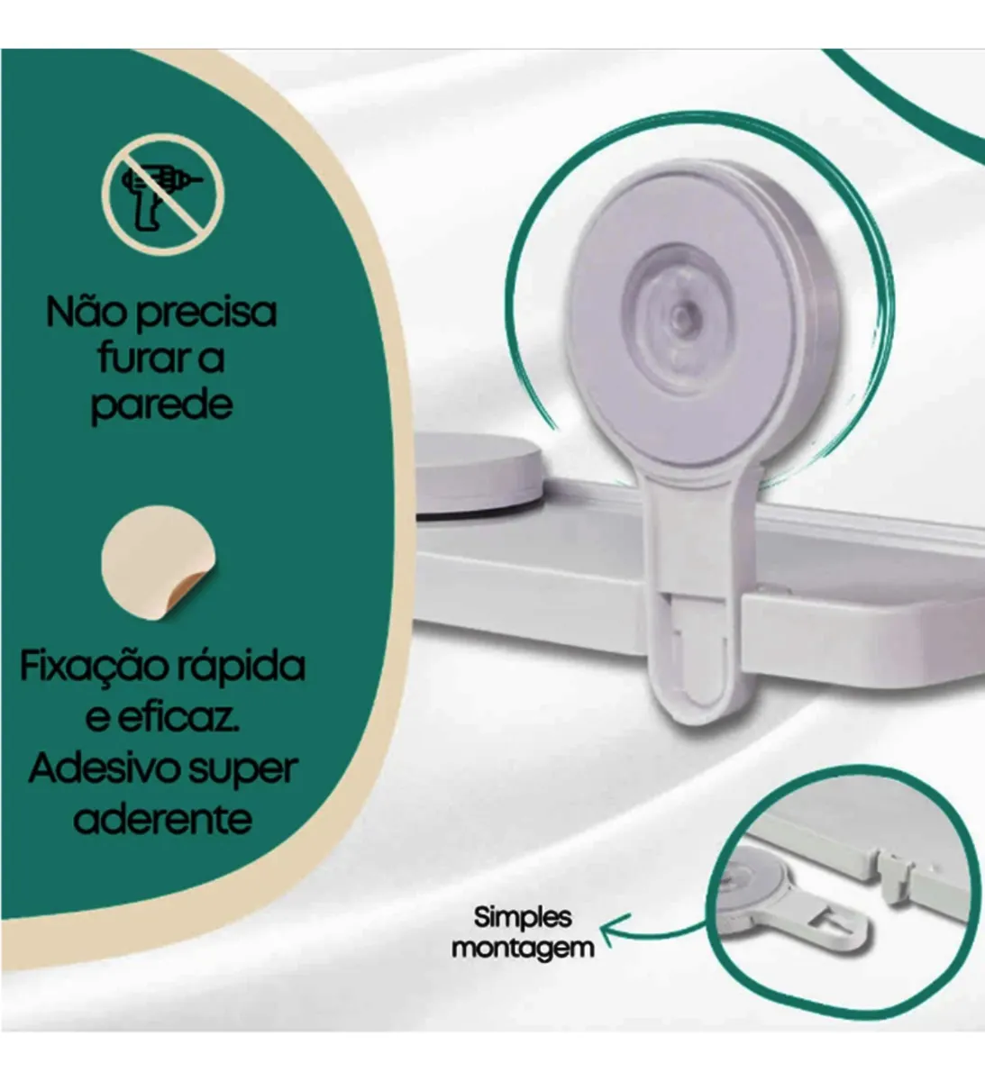 Seu adesivo de alta fixação garante instalação rápida e segura em superfícies lisas, proporcionando um visual moderno e discreto. Ideal para acomodar itens de higiene, cosméticos, temperos, pequenos utensílios e outros objetos do dia a dia.