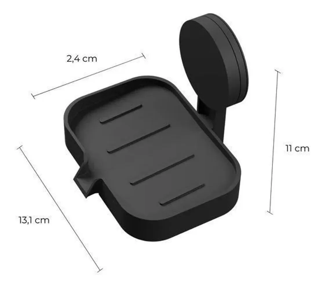 Seu acabamento preto fosco proporciona um visual elegante e sofisticado, combinando com qualquer decoração contemporânea. Fabricada em material resistente, é perfeita para sabonetes em barra, garantindo durabilidade e praticidade no uso diário.